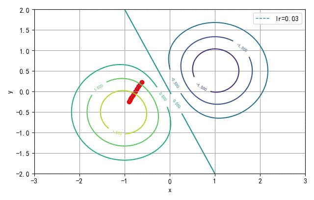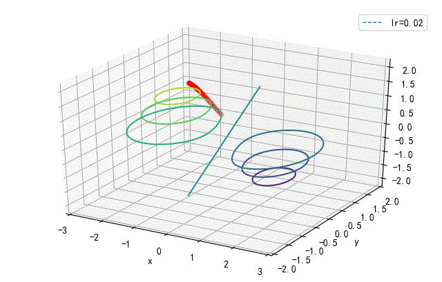 ax.plot(dx, dy, func(array(dx), array(dy)), linewidth=1, linestyle='--', label='lr=%4.2f'%lr)