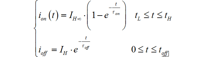 其中: I H ∞ = V C C R L , τ o n = L 1 R L I_{H\infty } = {{V_{CC} } \over {R_L }},\,\,\,\tau _{on} = {{L_1 } \over {R_L }} IH∞=RLVCC,τon=RLL1
