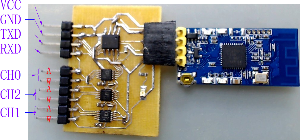 ▲ 安装有蓝牙通信模块后的电路板及其外部接口