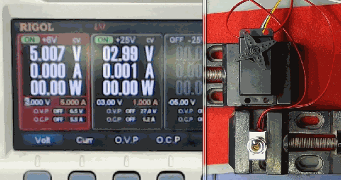 但是当电机转动到极限位置,被卡住之后,电机的堵转电流就会超过500mA。这个电流会随着工作电压的升高而变大。