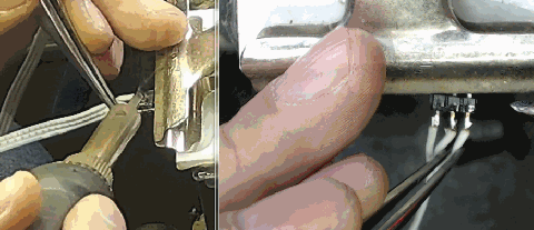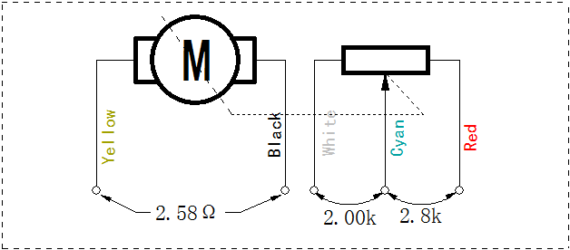 另外一组引线之间的阻抗在4.8K以内,根据它们的电阻数值关系,可以分辨出它们连接到位置电位器的三个接头的关系。