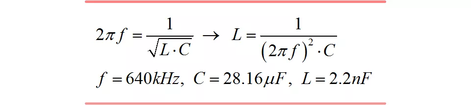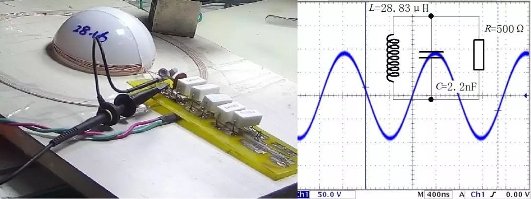 通过手持的LCR表测量,这两个接收线圈的电感与计算值基本接近。通过LC谐振公式可以计算出对应的串联谐振电容值: