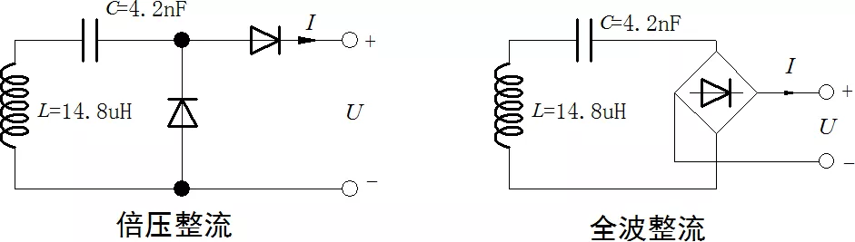将接收到的高频电压转换成直流电压可以使用倍压整流,或者全波整流方式,不使用半波整流方式。整流所使用的二极管一般使用大电流的肖特基二极管。