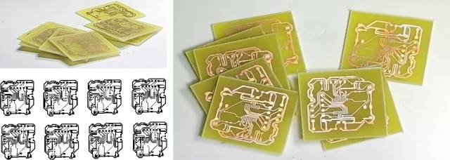 由于时间原因,送出去制版,就来不及明天使用了。还好,由于电路板非常小,使用“一分钟制版法”就可以轻松制作八块电路板。