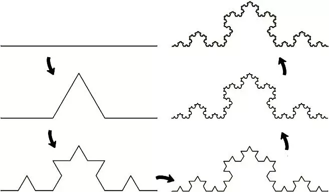 祖婵拿起粉笔,在黑板上描绘出Koch(柯克)曲线。