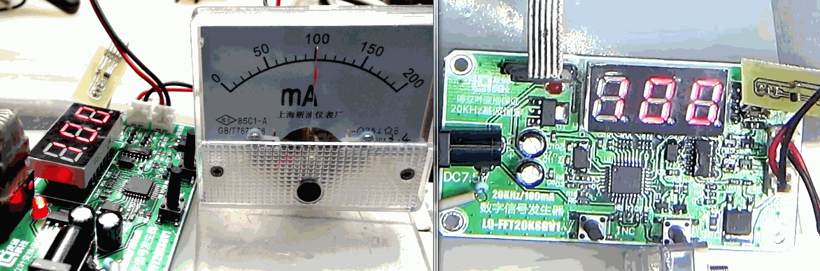 如果大家手边还存有原来的数字信号源,可以按照前面“傅里叶,请在帮助我们一次吧”中介绍的电路,增加一个AIN199芯片组成的电流采集简单电路,将输出信号引入电路板单片机的第8管脚(PA2)。