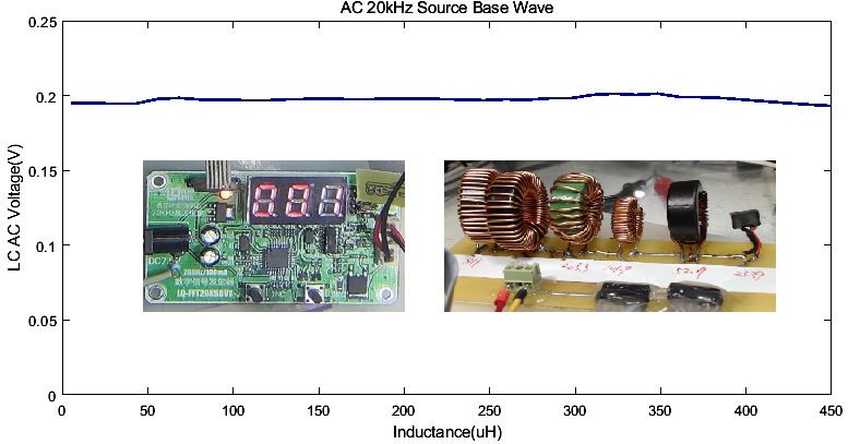 通过MATLAB自动记录在不同外部电感下实际LC谐振交流电压,绘制出曲线如下。显示通过基波反馈,可以在外部电抗变化很大范围内,都能够维持工作磁场信号的稳定,变化不超过5%。
