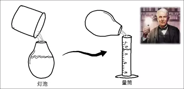 爱迪生看吧,随手将灯泡灌满水,然后倒进量筒,则立刻得到更加精确的内容积的数据。