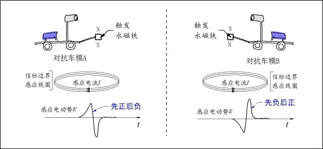 那就是比赛前使得对抗车模上的触发充磁铁在安装时,分别令其S极,N极朝下。这样在磁铁经过信标周围的感应线圈时,所产生的电磁感应脉冲信号的极性变化是不同的。由此,信标电路可以判断此时触发的是那一辆比赛的车模。