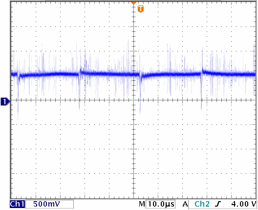 下面的波形就是测量电路中A点的电压,它是电流取样电阻上的电压,反映了流经下桥臂的电流情况。