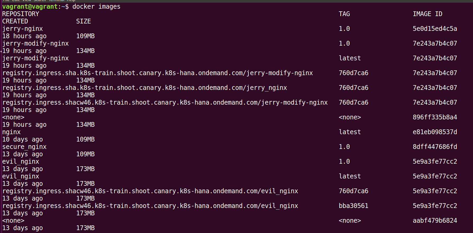比如我机器上docker images返回的这些基于nginx的镜像,每个都超过了100MB,而一个简单的Ubuntu的容器超过了200MB,如果安装了相关的软件,尺寸会更大。