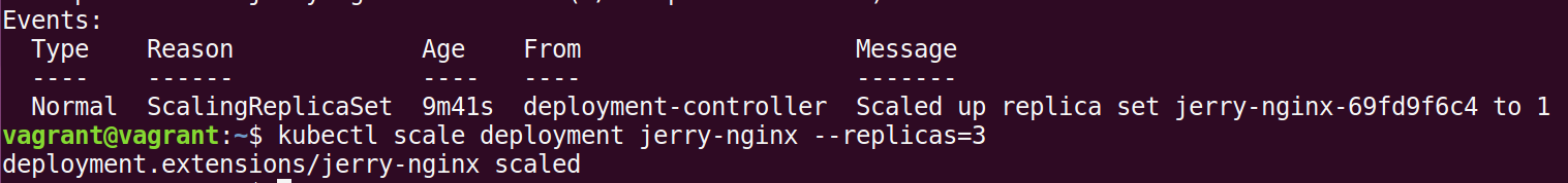 Normal ScalingReplicaSet 9m41s deployment-controller Scaled up replica set jerry-nginx-69fd9f6c4 to 1