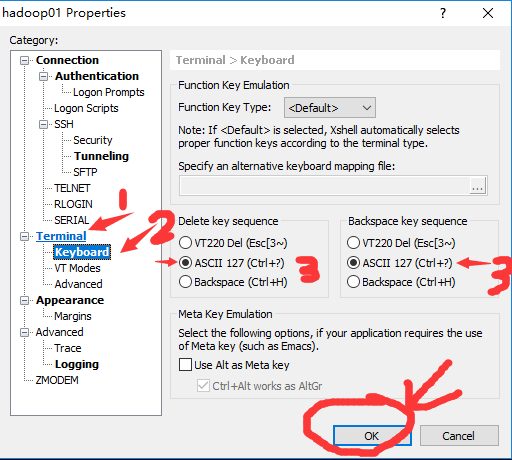 进入到XShell 文件 --> 属性 --> 终端 --> 键盘
