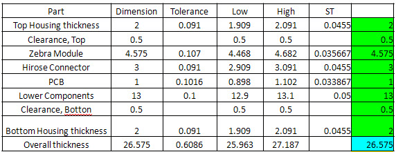 取100000个随机样本,每个样本有8个值,对应8个零件各自的厚度。计算发现,产品的合格率为99.9979%,即百万分之21的概率,厚度会超出27mm。