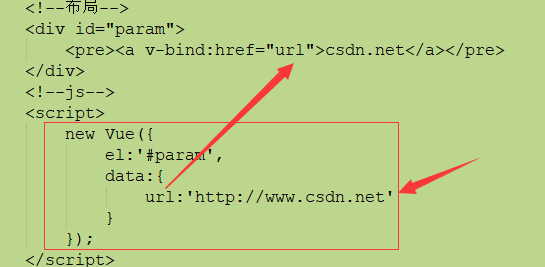 <pre><a v-bind:href="url">csdn.net</a></pre>