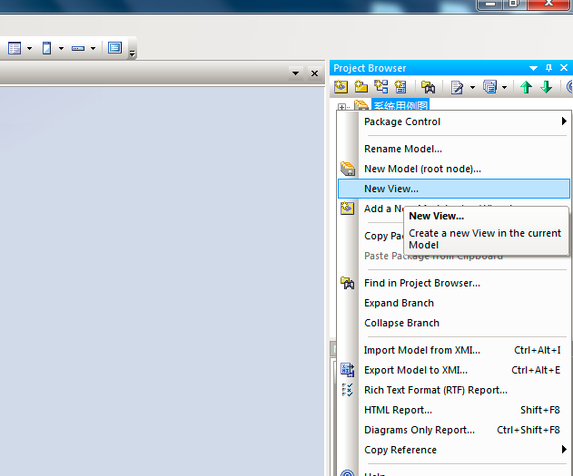 6、然后我们新建用例图,右键点击“模型“,选择”new view”,如图: