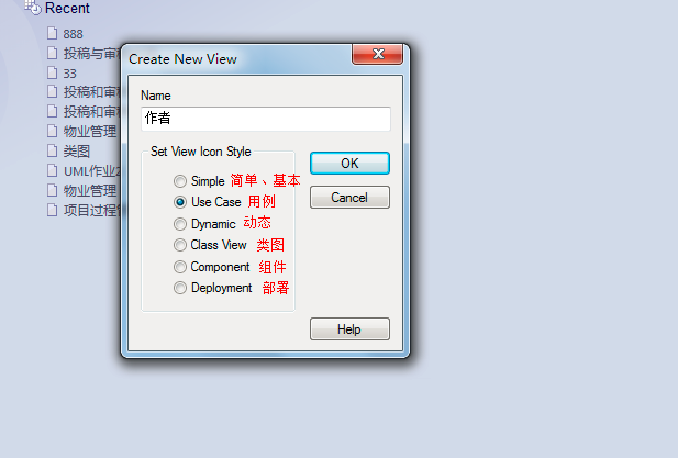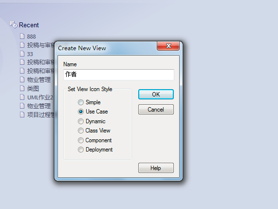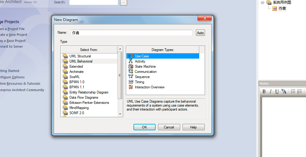 7、弹出框中在“name“命名该用例,然后选择“Use Case“,如图: