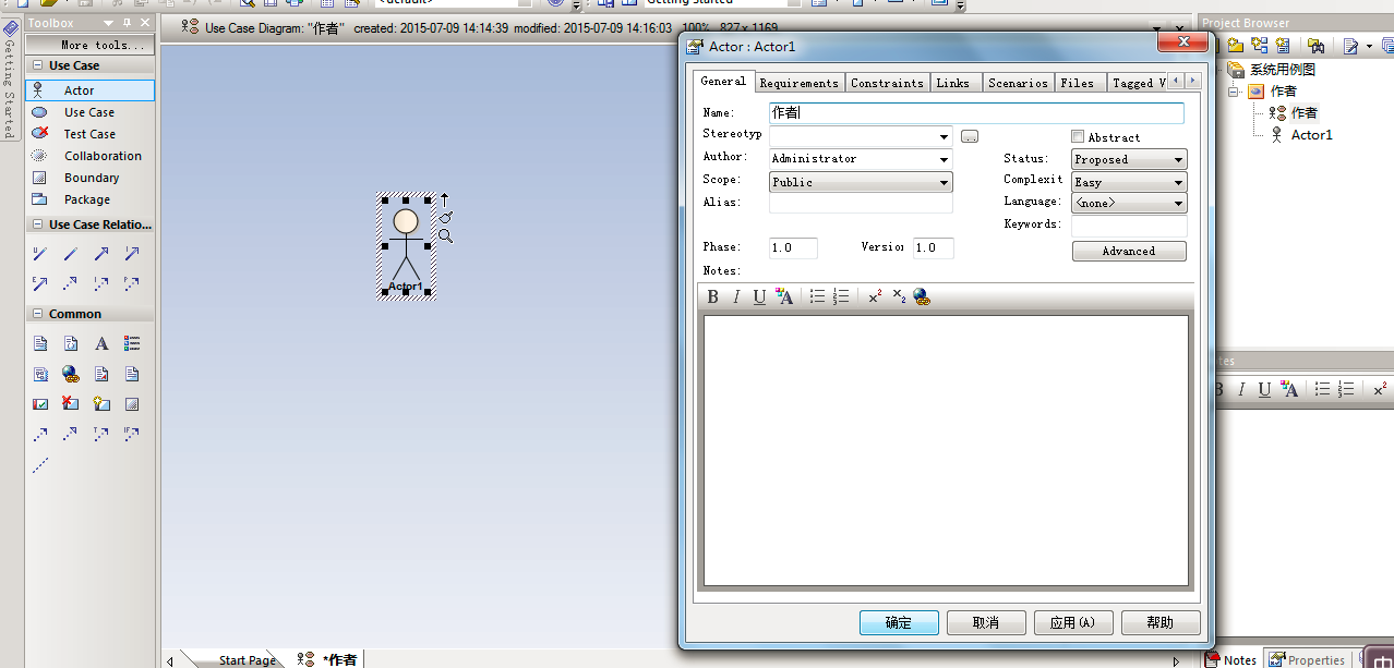 13、到此,我们就建立用例图完成了,大概的步骤流程就是这样,具体还是很多的,需要我们慢慢去学习,去了解。