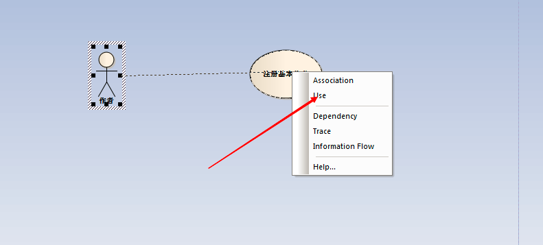 12、然后把对象和用例关联起来,这里选择“Use“如图: