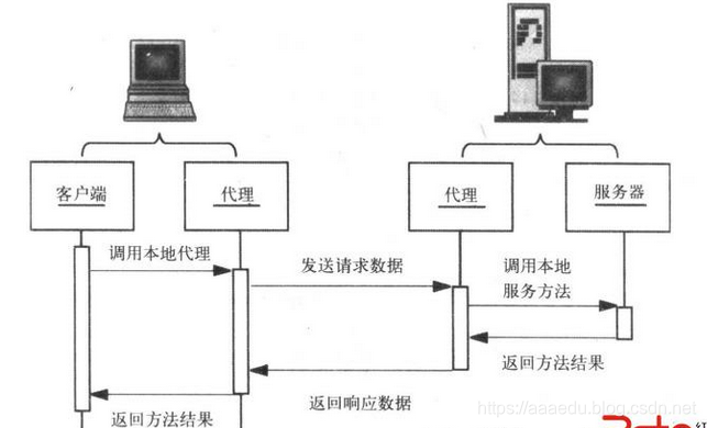 在设计初始阶段,我们真正想要的是这样一种机制,客户端程序员以常规方式进行方法调用,而无需操心将数据发送到网络上或者解析响应之类的问题。所以才有了如下的网络模型:在客户端为远程对象安装一个代理。代理是位于客户端虚拟机中的一个对象,它对于客户端程序来说,就像是要访问的远程对象一样。客户端调用此代理时,只需进行常规的方法调用。而客户端代理则负责使用网络协议与服务器进行联系。