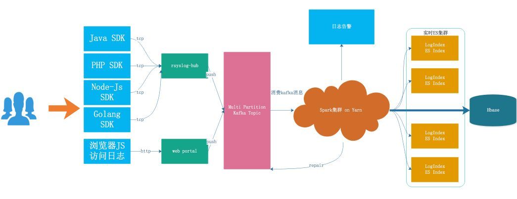- 缺乏部分链路监控:日志从产生到可以检索,经过多级模块,现在采集,日志缓冲层还未串联,无法对丢失情况进行精准监控,并及时推送告警。
