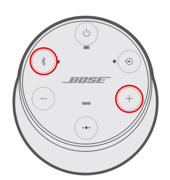 - 同时按住多功能和 Volume +(音量 +) 按钮,直至您听到“Bose speakers unlinked”(Bose 扬声器连接断开)
