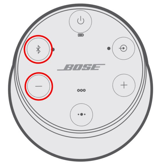 - 按住 Bluetooth(蓝牙)按钮,直至您听到“Bose speakers unlinked”(Bose 扬声器连接断开)