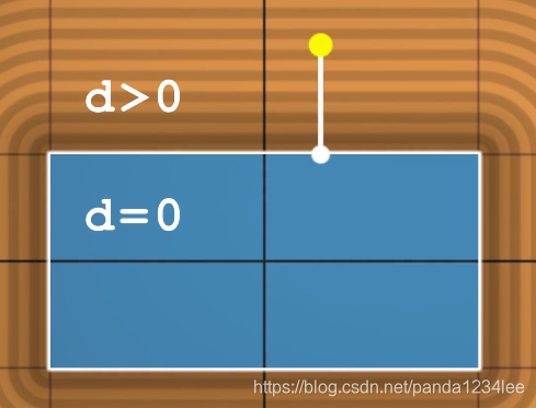abs(p) - b 的距离示意图:外部为正,边上为 0