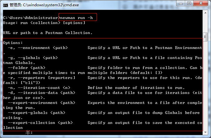newman run d:\登录测试\.postman_collection.json -e d:\测试项目.postman_environment.json -d d:\搜索测试.csv ----export-environment d:\test