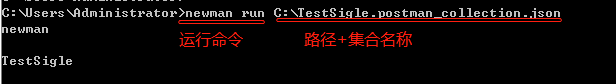 newman run 集合名称.json -e 参数路径\环境变量文件名称
