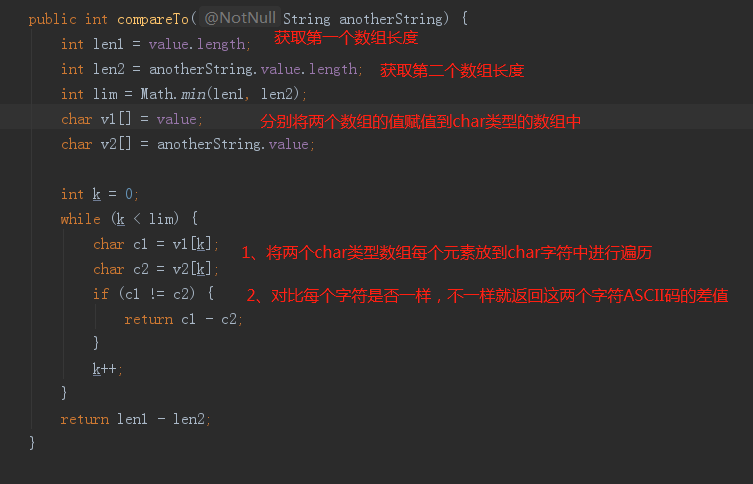 1、String 是字符串,它的比较用compareTo方法,它从第一位开始比较, 如果遇到不同的字符,则马上返回这两个字符的ascii值差值.返回值是int类型
