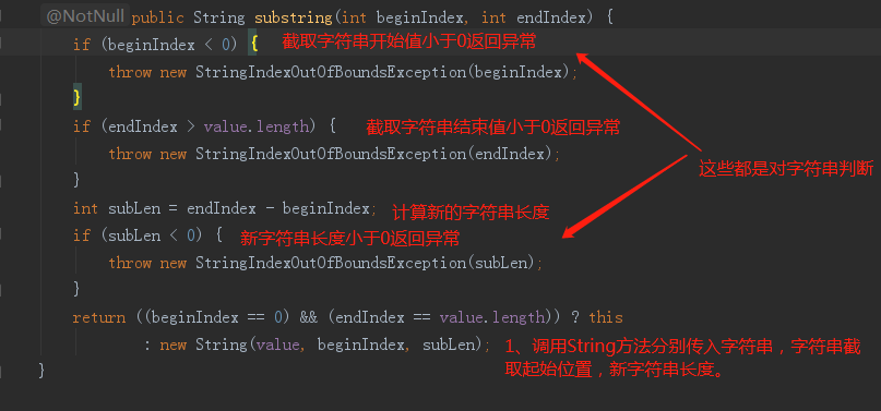 1、substring调用 String(value,beginIndex,subLen)方法。