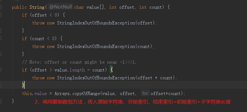 2、String(value,beginIndex,subLen)方法调用数组复制方法 Arrays.copyOfRan...