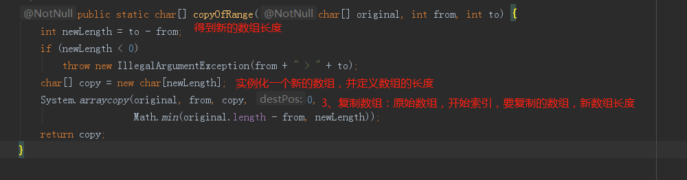 2、String(value,beginIndex,subLen)方法调用数组复制方法 Arrays.copyOfRange()方法