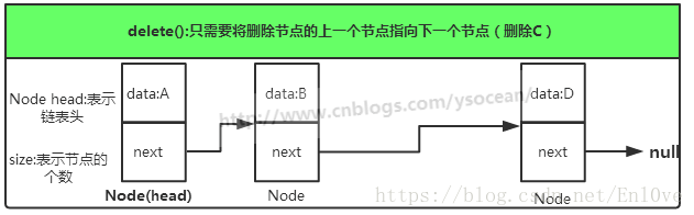 单链表只可向一个方向遍历,一般查找一个节点的时候需要从第一个节点开始访问,一直访问到需要的位置。而插入一个节点,对于单链表,我们只提供在链表头插入,只需要将当前插入的节点设置为头结点,next节点指向原头节点即可,删除一个节点,我们将该节点的前一个节点的next指向该节点的下一个节点。