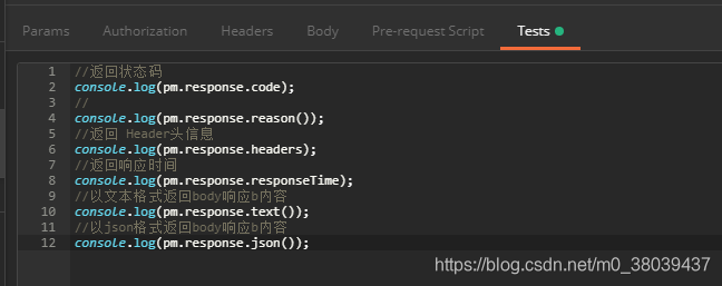 //返回状态码console.log(pm.response.code);//console.log(pm.response.reason());//返回 Head...