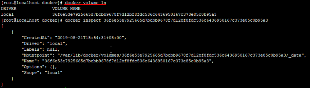 #查看数据卷详细信息 inspect后面是数据卷的ID号