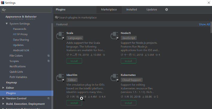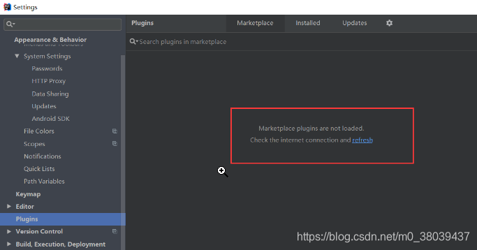 我在Intellij IDEA 2018中搜索安装我们想要的插件时,有时候发现打开Setting->Plugins,Marketplace搜索插件页面加载不出来。而且搜索插件也搜索不出来。