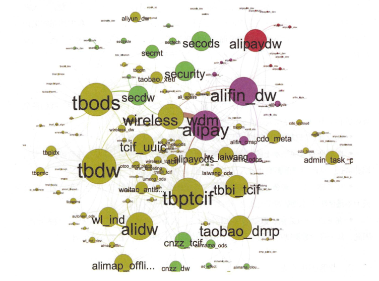 阿里的数据中台治理主要是在2014年开始的,在2014年以前,阿里的大数据建设处于烟囱式开发状态,这样的开发带来了许多业务的困扰和资源的浪费,2014数据依赖如下图