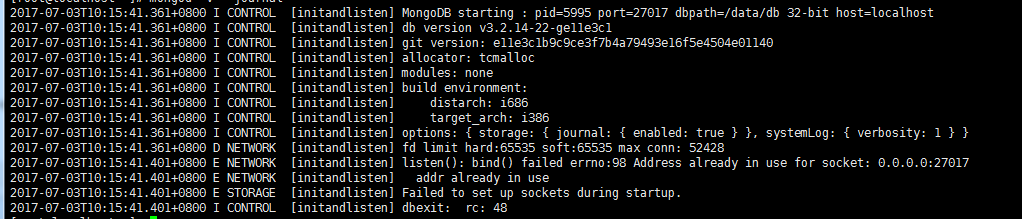 2018-04-28T13:22:15.303+0800 I CONTROL [initandlisten] dbexit: rc: 100