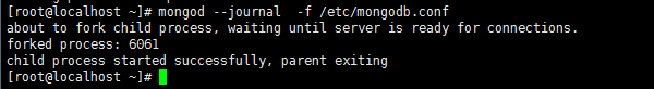 下次在启动,就可以采用上面的通过文件启动方式了。mongod --journal -f /etc/mongodb.conf (32位系统需加参数 --journal)