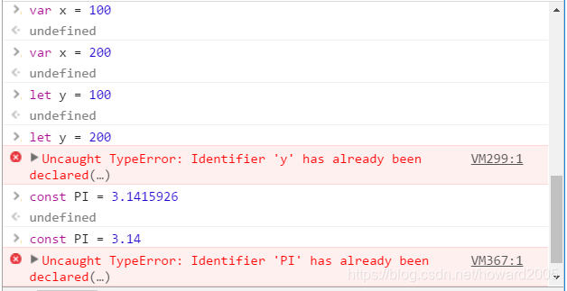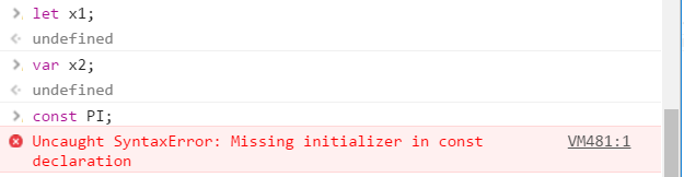 var与let声明的变量可以不赋初值,但是const声明的常量必须赋初值。