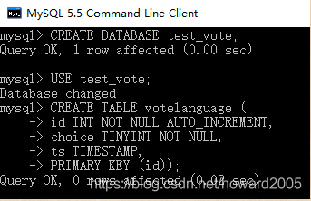 网上调查站点由两个页面构成。第一个页面(vote.html文件)是一份问卷,问卷上只有一个问题“开发MySQL应用程序你最喜欢哪种编程语言?”在这个问题下面列出了几种程序设计语言供人们投票选择,在选择了一种语言并单击OK按钮之后,将看到一个调查结果页面(results.php文件)。