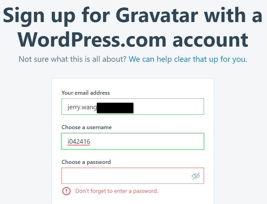 后来经过研究才发现,需要用在Docker hub上注册用户的同一个邮箱到Gravatar这个网站上再注册一个账号: