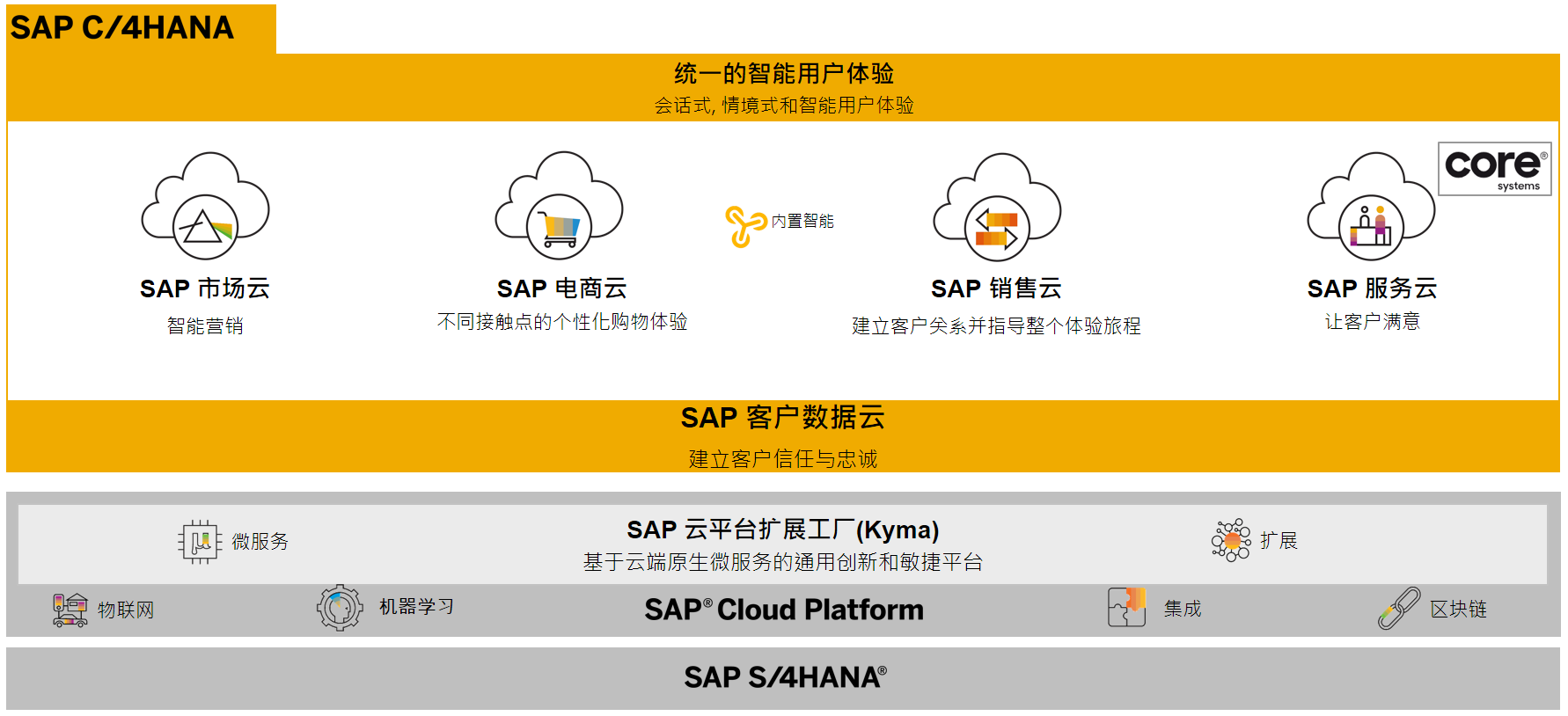 什么是Kyma?去年6月份,SAP C/4HANA正式announce时,这张图在大家的朋友圈中都刷屏似的存在。