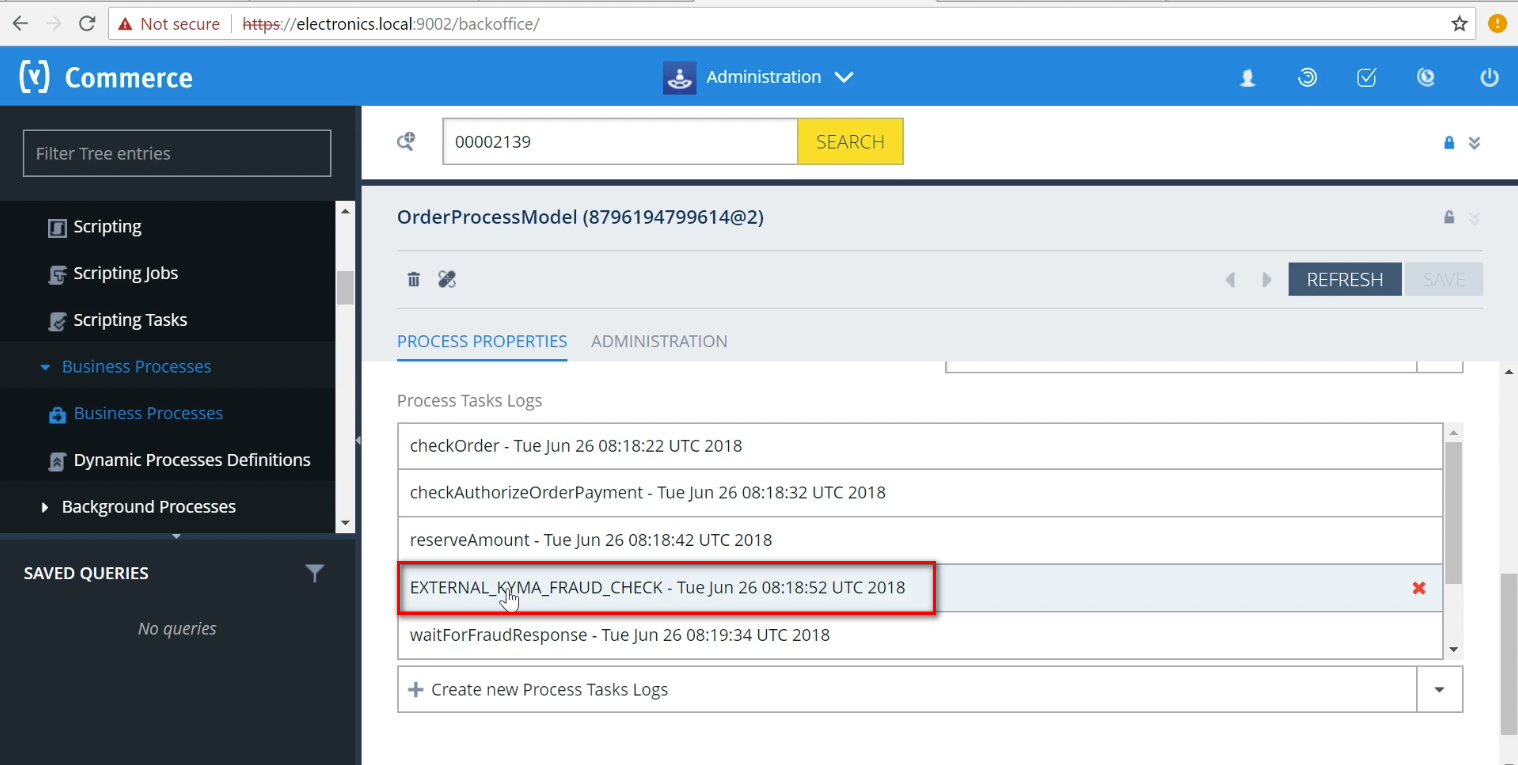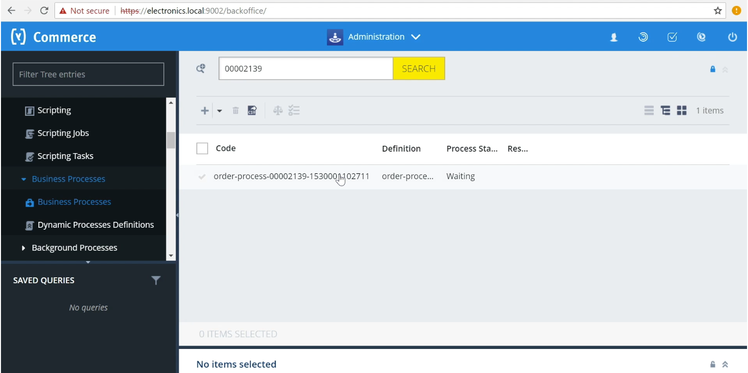 回到Commerce back office页面,查看刚才下的订单的Business Process: