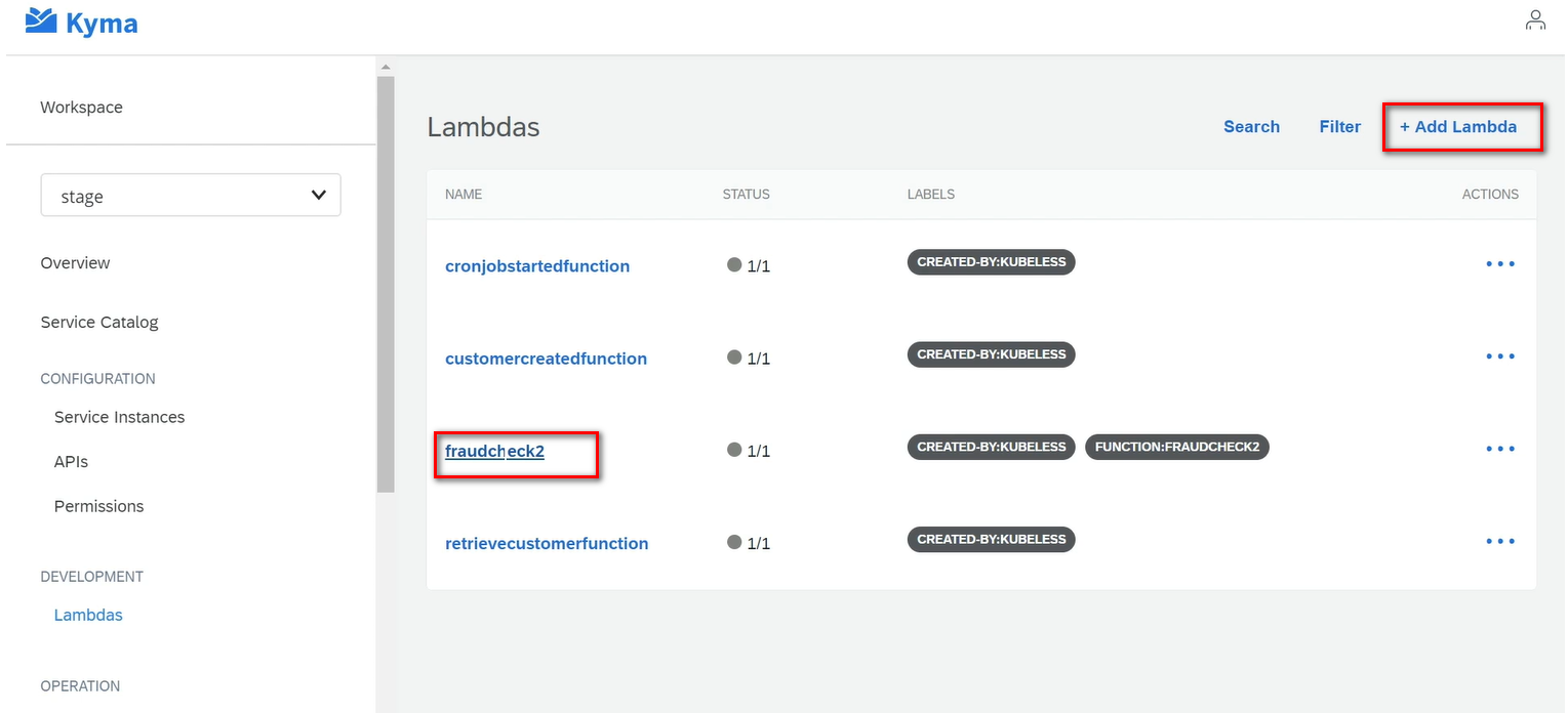 选择一个stage进去,点击Lambdas进入编辑页面: