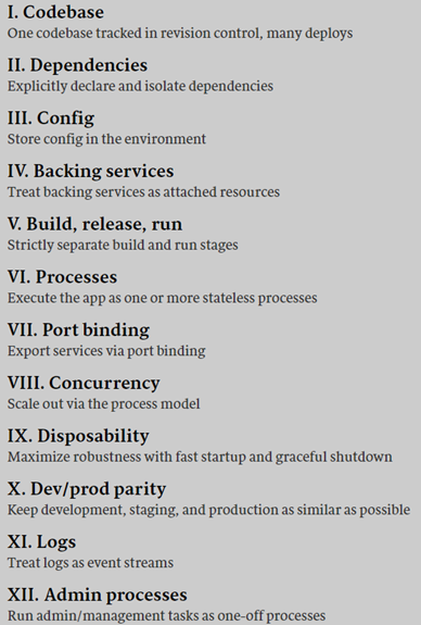 得益于近些年微服务架构的火热,很多企业包括SAP自己也在开发基于微服务架构的新应用,比如在坐很多同事所在团队正在做的事情。而基于微服务架构的SaaS软件开发,业界有一套标准,或者说是最佳实践,那就是著名的twelve-factor标准: