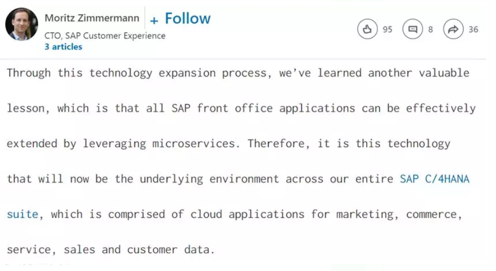 Kyma对C/4HANA意味着什么?我们CX部门的CTO Moritz Zimmermann, 在他的linkedin上发表过一篇博客,里面也提到了Kyma: