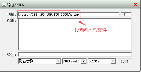 第一步,上传一句话木马到Web网站根路径并使用中国菜刀连接